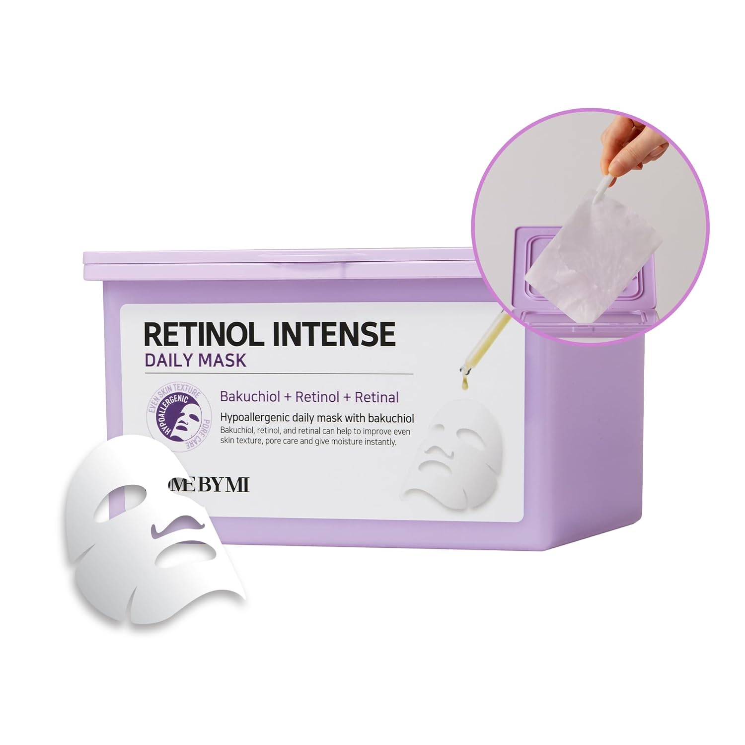 SOME BY MI Retinol Intense Daily Mask – 30 Sheets, 11.8Oz – Mild Korean Retinol Vegan Face Sheet Mask for Glass Skin Routine – Skin Texture, Elasticity and Aging Sign Care – Korean Skin Care